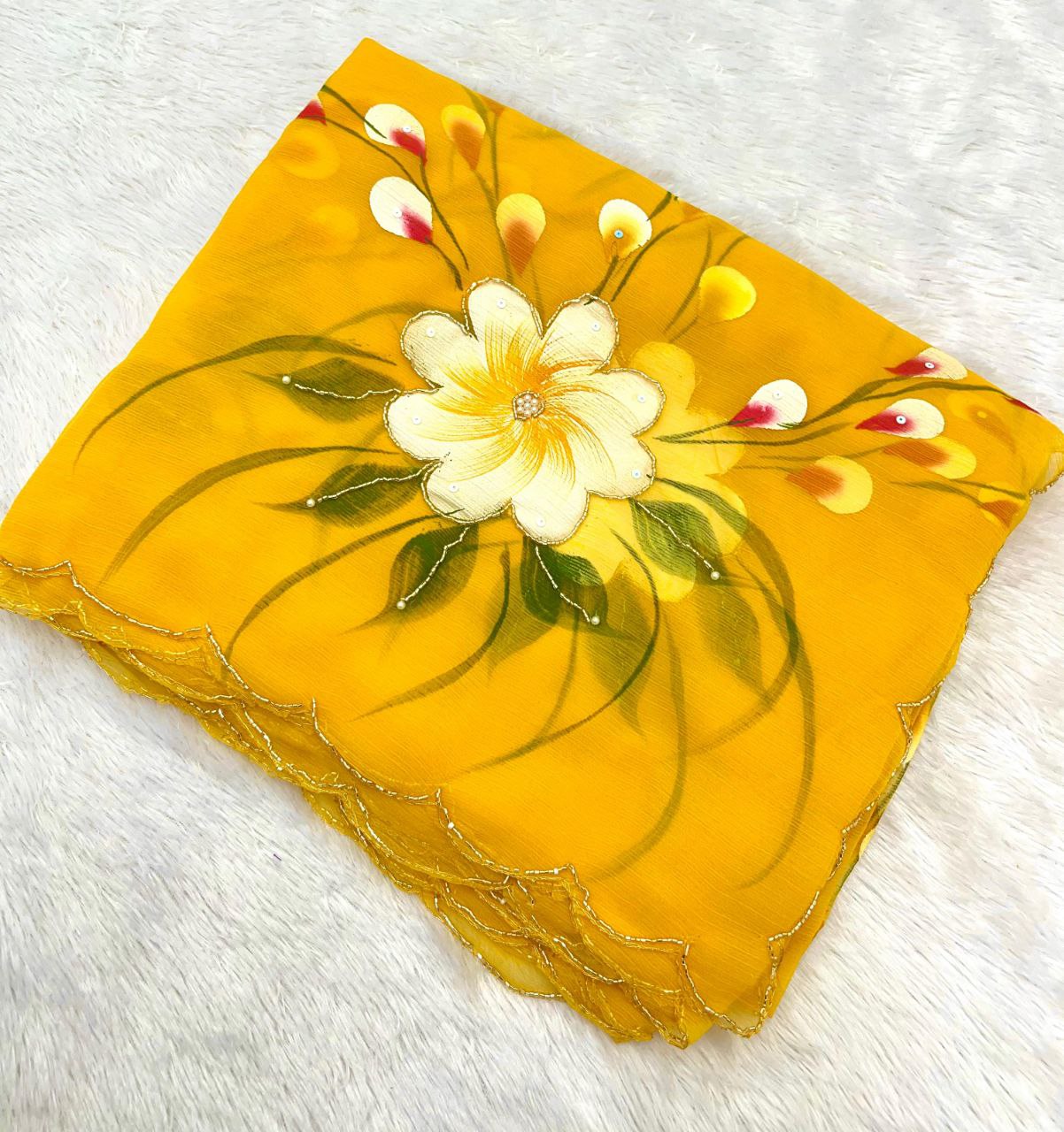 It has all over Handbrush Flowers with work Handwork Cutwork All over